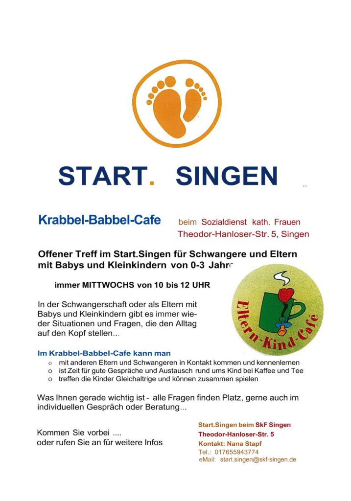 Alle Singener Familien mit einem Baby bis zum ersten Lebensjahr bekommen zur Geburt ein Willkommensbuch und ein Willkommensgeschenk der Stadt Singen. Beides wird den Eltern persönlich nach Hause gebracht. Dafür bekommen die Familien nach der Geburt einen Terminvorschlag per Post von den Mitarbeitenden der Anlaufstellen Start. Singen.